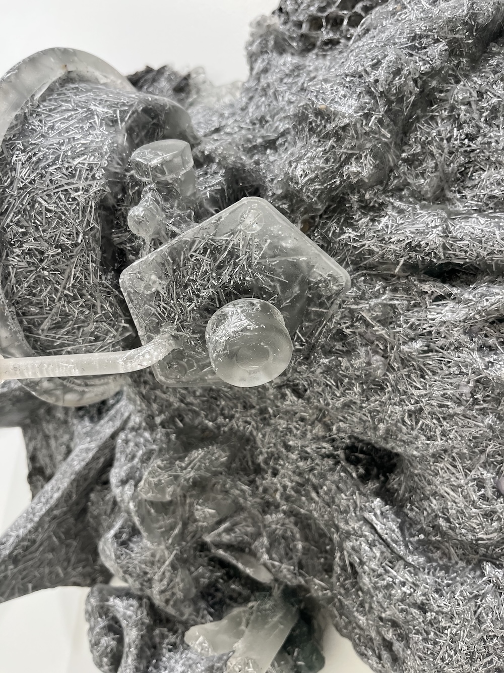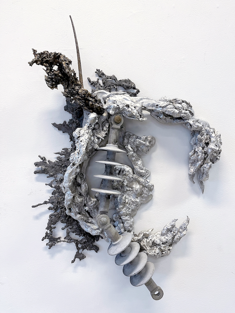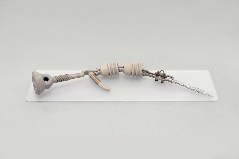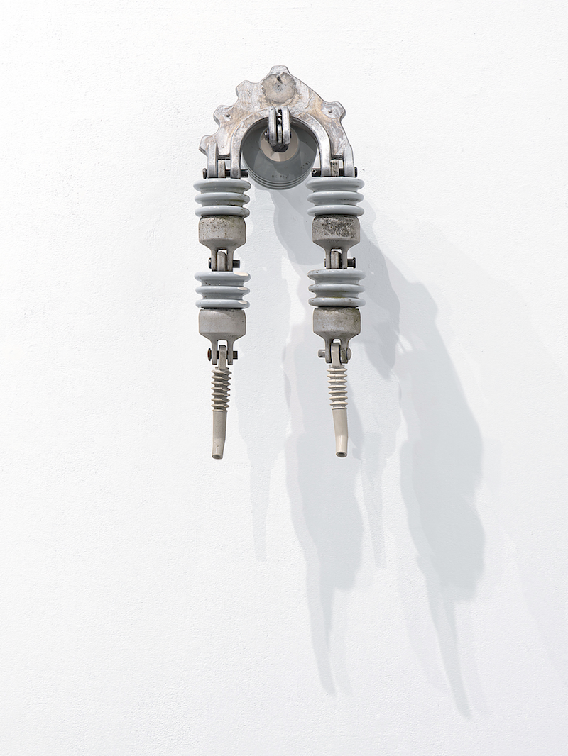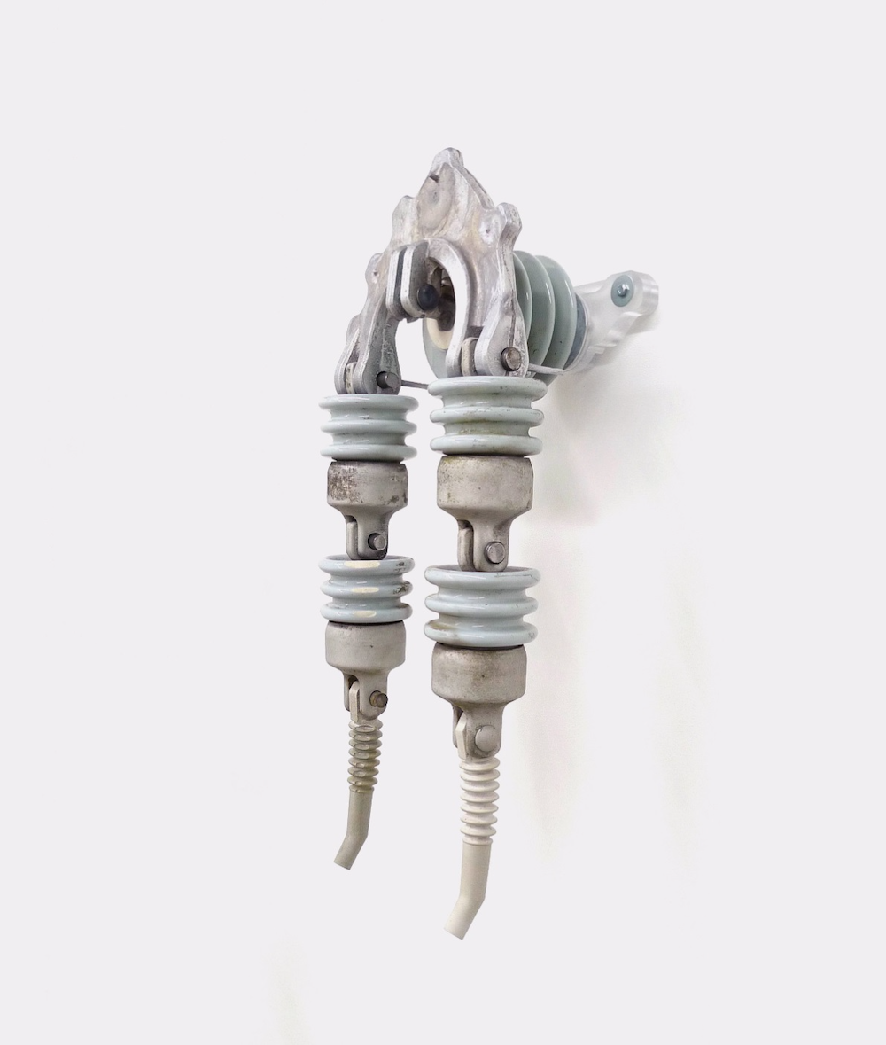 Nilson’s sculptures fuse found and fabricated objects to create new, hybrid configurations. His studio is a dense trove of found objects, specimens, curiosities, and salvaged raw materials from both urban and natural environments. Meticulously joining together these objects, the resulting forms are at once familiar and otherworldly, like relics of a not-so-distant past or future. For sourcing and inspiration, the artist visits interstitial spaces — between roadways and wooded areas, land, and water — the places where everyday artifacts accumulate. Engaging with themes of hybridity, mutation, and overconsumption, Nilson’s exploration of form and structure is inspired by his personal research into natural sciences, mechanical principles, and industrial processes.
