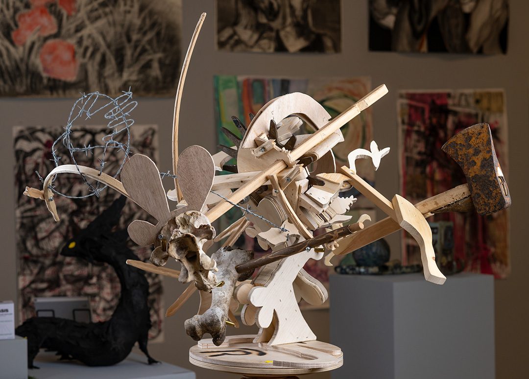 All first-year students complete the Foundation core, along with required art history and liberal arts courses, and begin the fine arts major in the fall of their second year. Continuing art history and general education coursework, second-year students take focused courses in their chosen area—painting, drawing, printmaking, sculpture, or jewelry. In addition to studio work, all fine arts students take departmental seminars on social, historical, and critical issues in contemporary art.